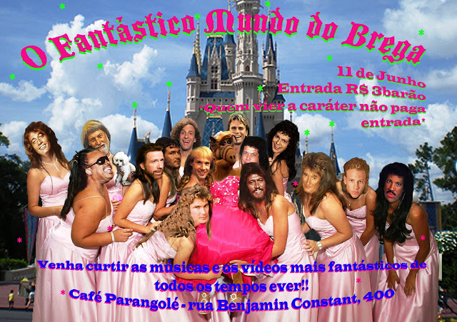 Na noite de sábado, vamos fazer uma Festa Brega. Vão rolar as músicas mais absurdas com as roupas menos discretas do mundo. O ingresso vai custar R$ 3,00, mas quem vier vestido a caráter não paga nada, só o mico. A festa começa às 20 horas.